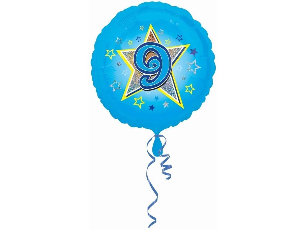 Fóliový balonek s číslem 9 modrý, velikost 43 cm.
