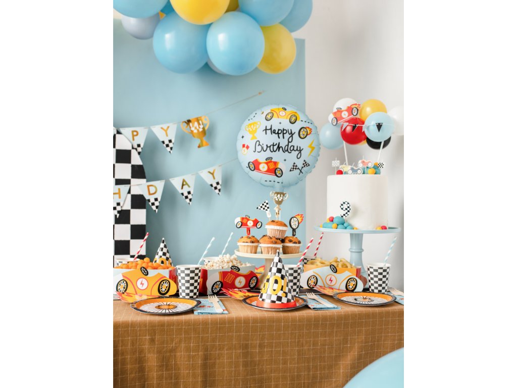 Balonek fóliový Happy Birthday Auto-závody, 45 cm
