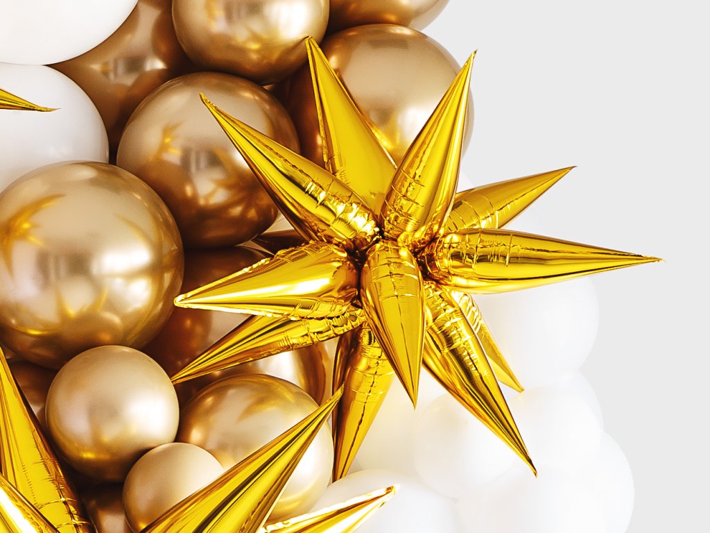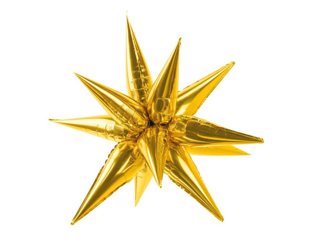 Dekorativní fóliový balonek ve tvaru 3D hvězdy, barva metalická zlatá, velikost 70 cm. Balonek má několik částí, které je po nafouknutí potřeba "zaplést" do sebe dle návodu na zadní straně obalu.