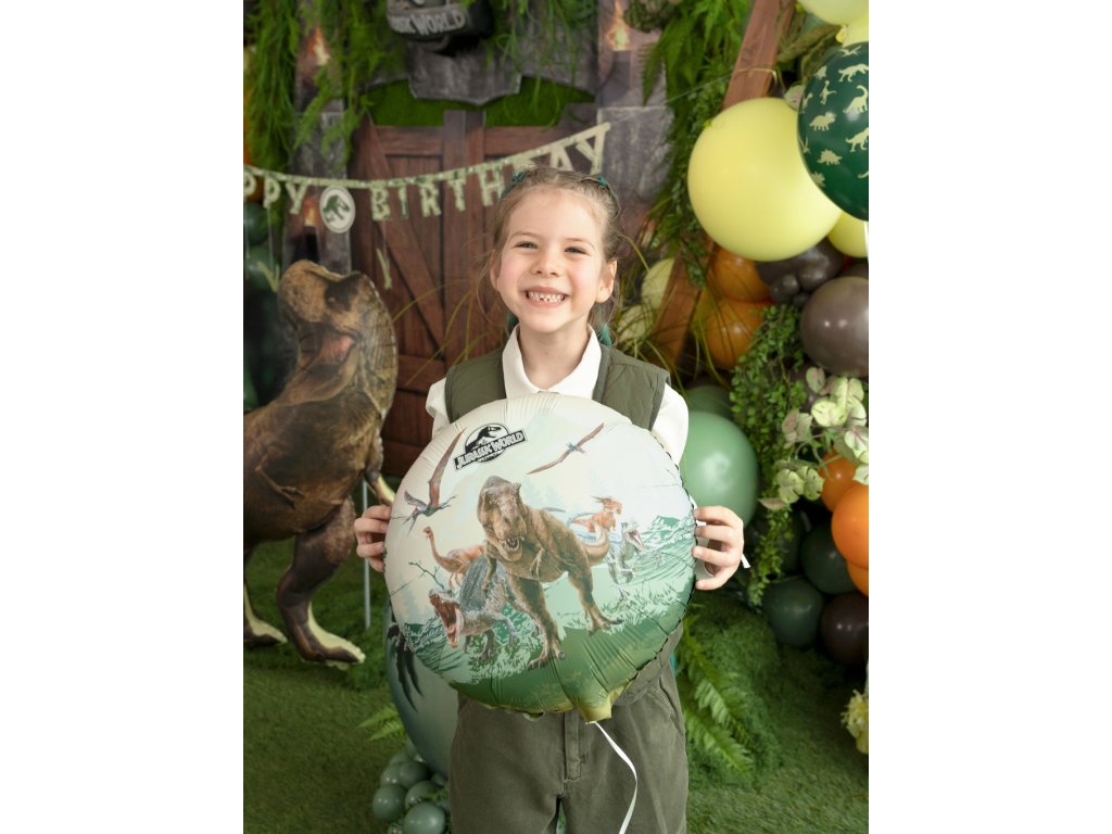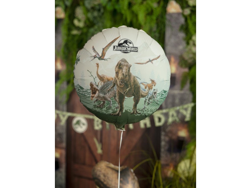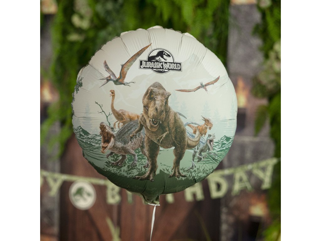 Připravte se na setkání s největšími predátory všech dob! Tento stylový kulatý balonek s motivem Jurského světa přenese všechny malé dobrodruhy přímo do srdce pravěké džungle. Detailní potisk s králem dinosaurů T-Rexem a dalšími prehistorickými tvory na pozadí divoké přírody okamžitě dodá vaší oslavě tu správnou dávku napětí a dobrodružství.