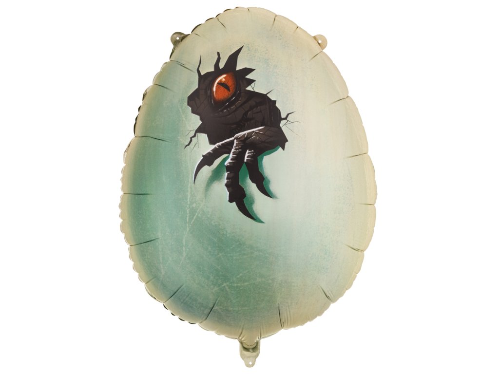 Připravte se na ten nejnapínavější okamžik každé expedice! Tento originální tvarovaný fóliový balonek v podobě dinosauřího vejce zachycuje moment, kdy se na svět dere malý, ale nebezpečný predátor. Detailní potisk s praskající skořápkou, dravým okem a drápem vykukujícím ven dodá vaší oslavě v duchu Jurského světa neopakovatelnou atmosféru plnou napětí a očekávání.