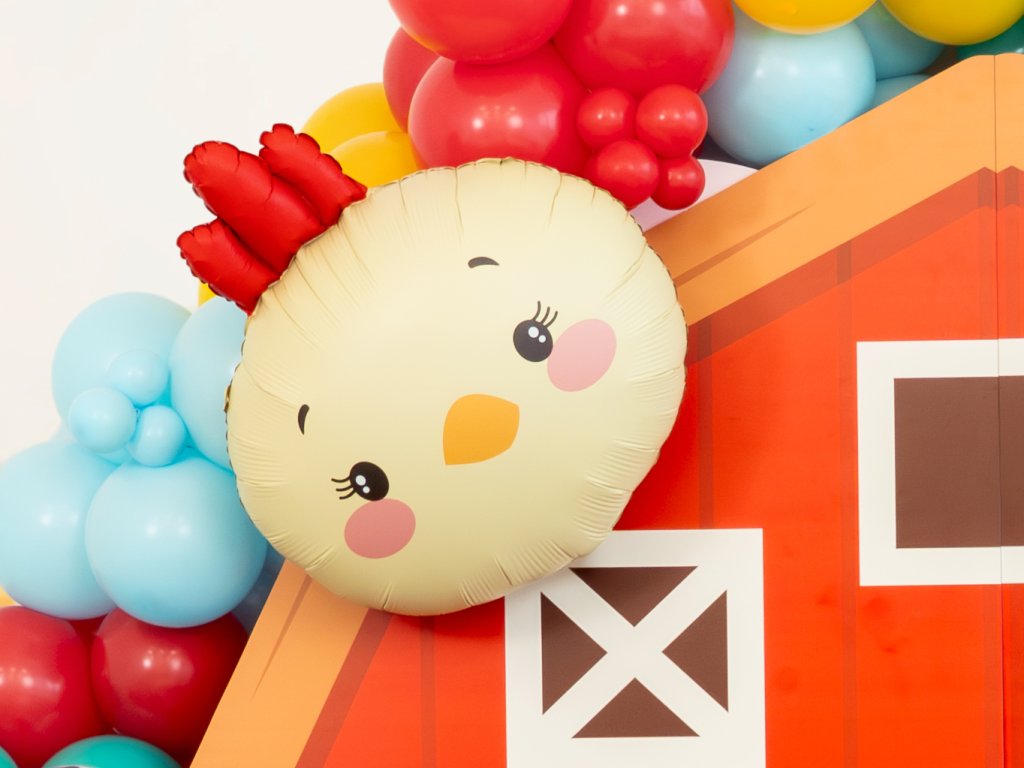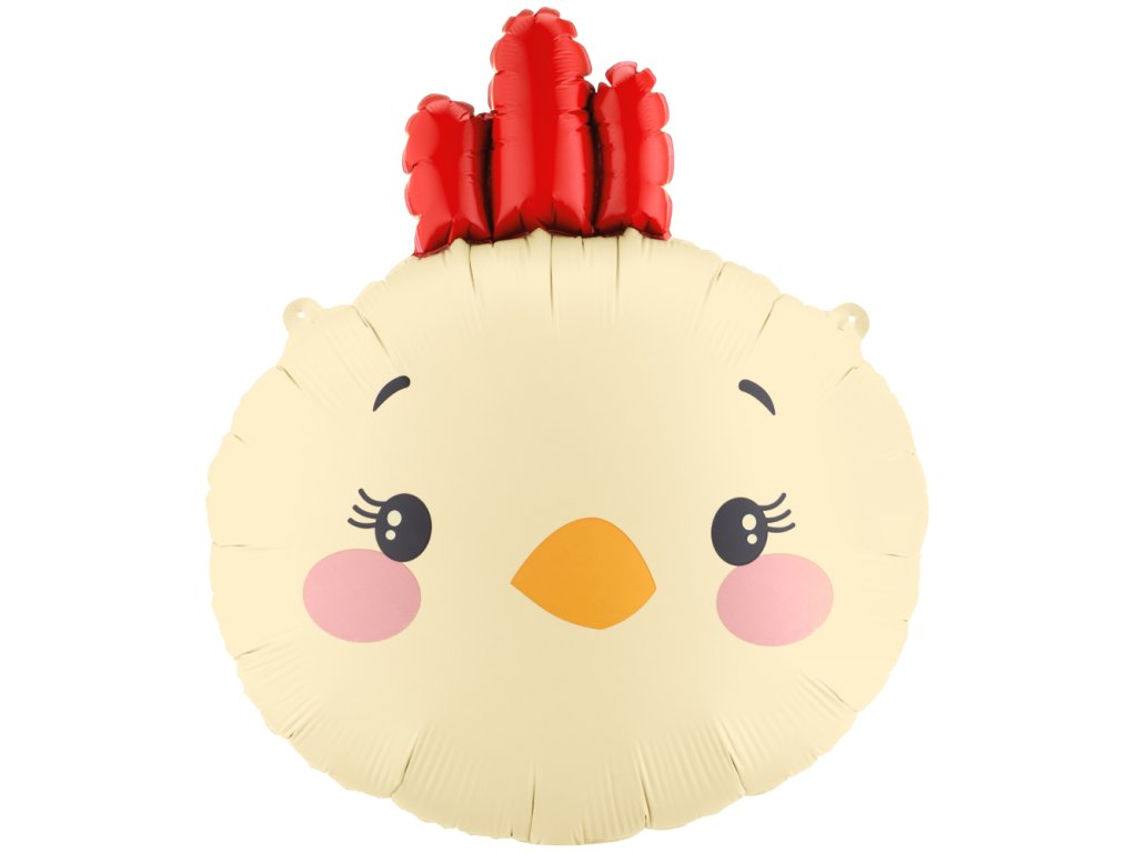 Fóliový balonek Kuřátko ve světle žluté barvě s červeným hřebínkem, velikost 62,5 x 73,5 cm.