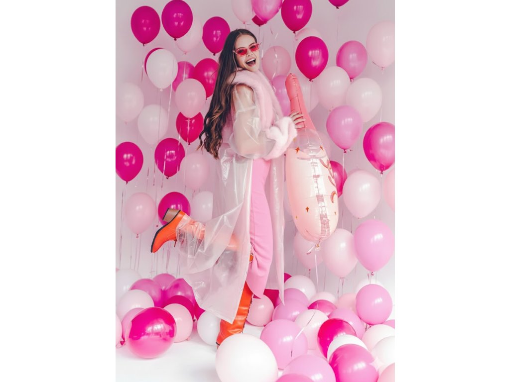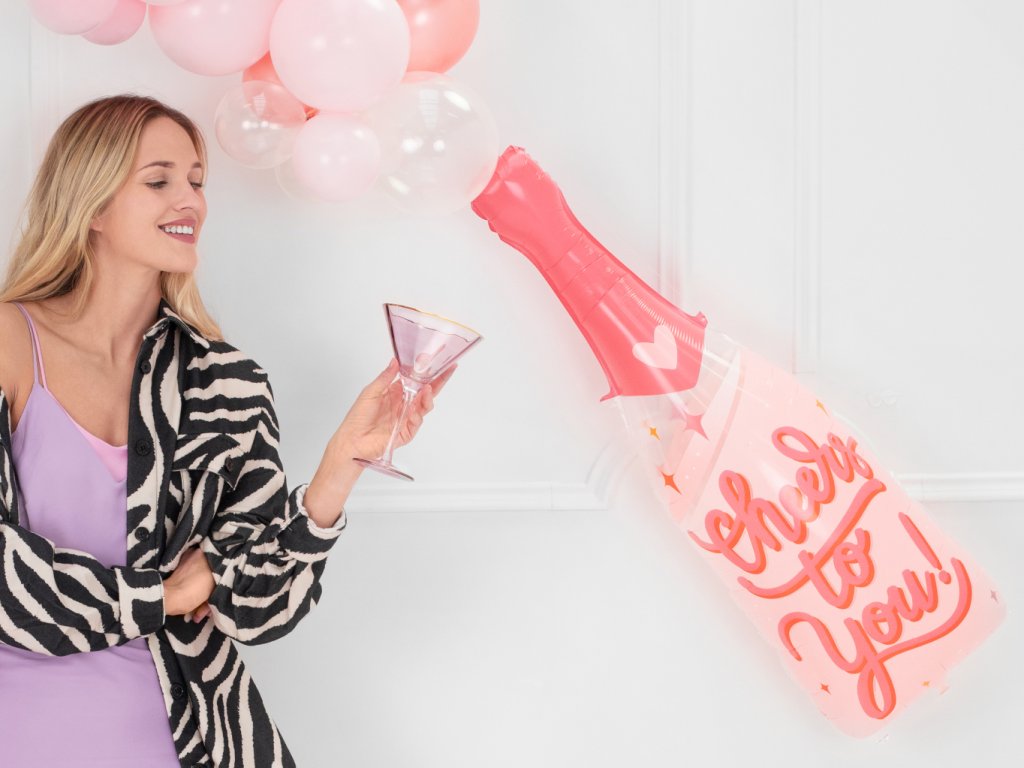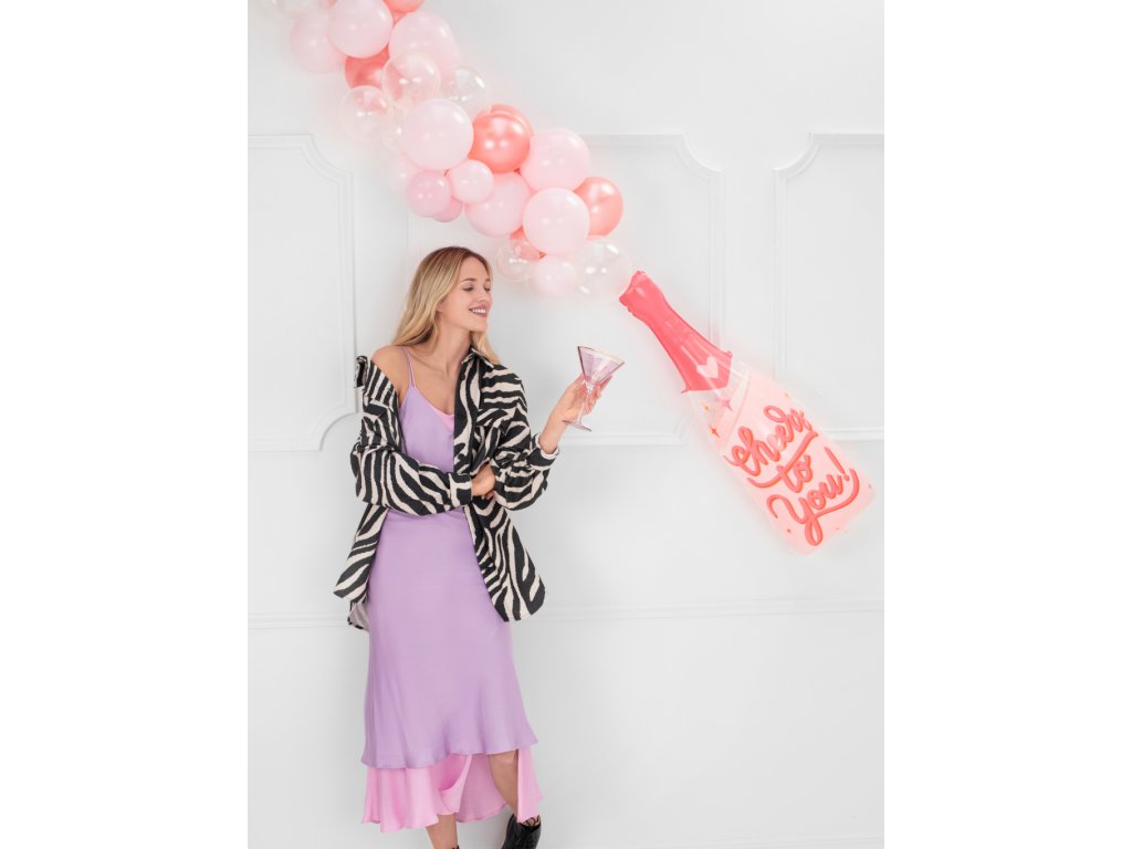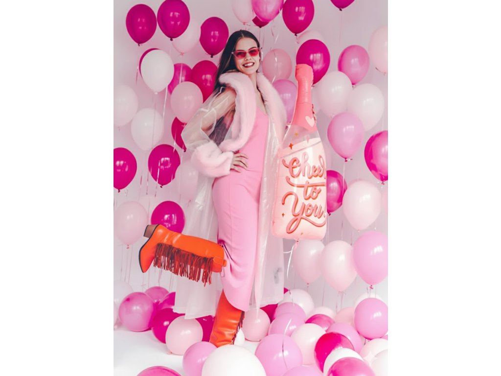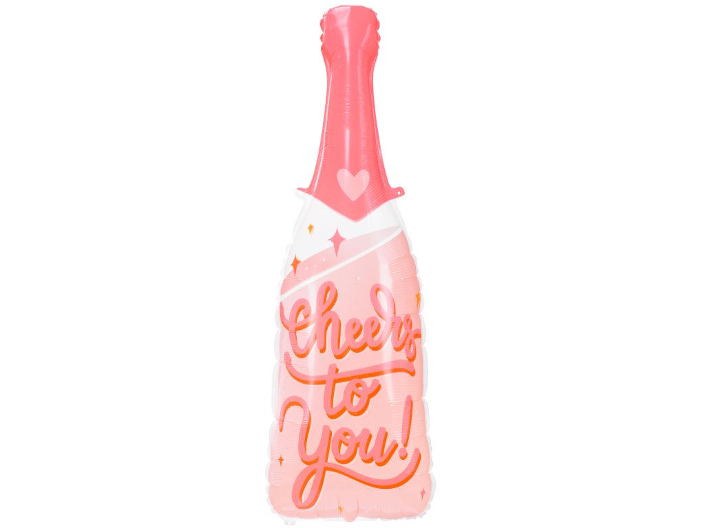 Fóliový balonek lahev sektu růžová s nápisem Cheers to You (na zdraví tobě), velikost 38 x 97 cm.