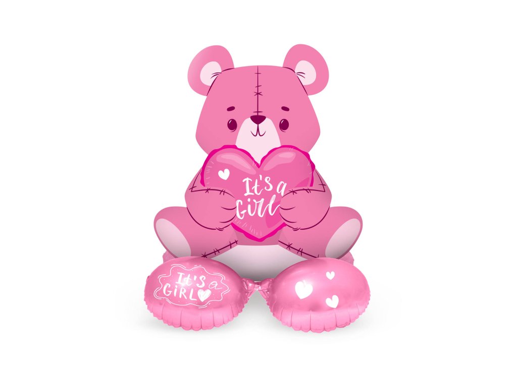 Balonek fóliový Medvěd It's a Girl samostojící, 61 cm