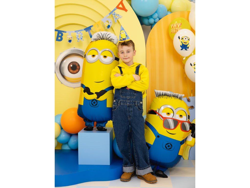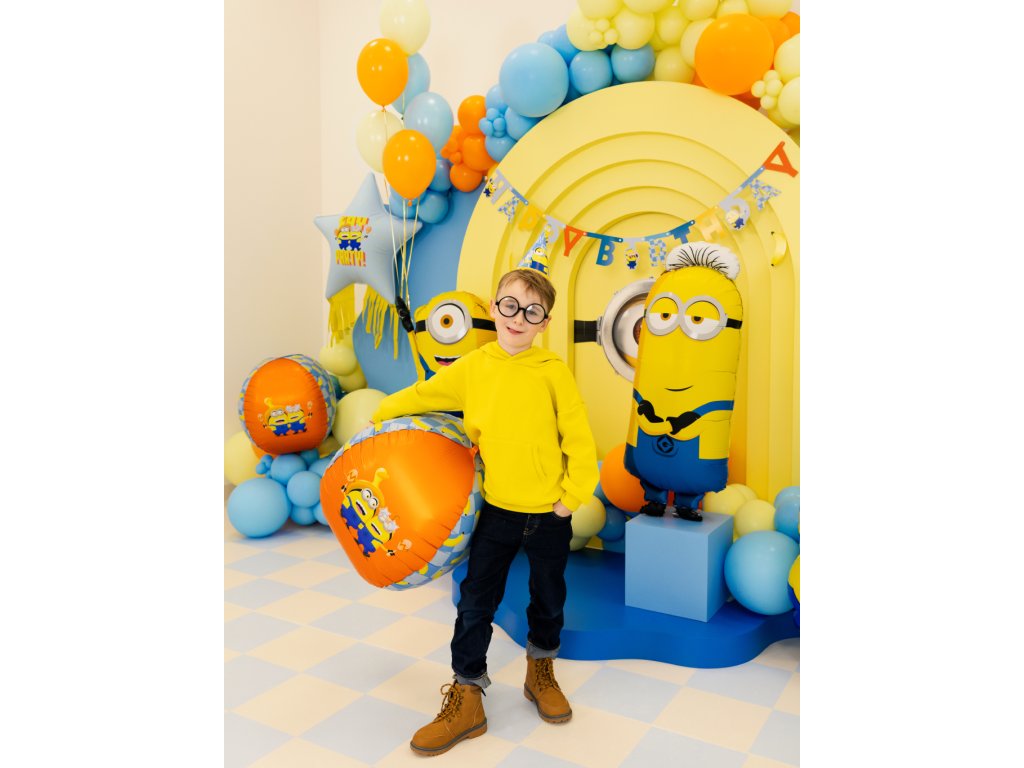 Hledáte parťáka, který na oslavě dohlédne na dobrou zábavu? Tvarovaný fóliový balonek v podobě vysokého Mimoně Tima je přesně to pravé! Tim se svým typickým rozvážným výrazem, zkříženýma rukama a chomáčkem vlasů na hlavě okamžitě dodá vaší párty ten správný mimoňský charakter. Díky svému štíhlému a vysokému tvaru je v prostoru nepřehlédnutelný.