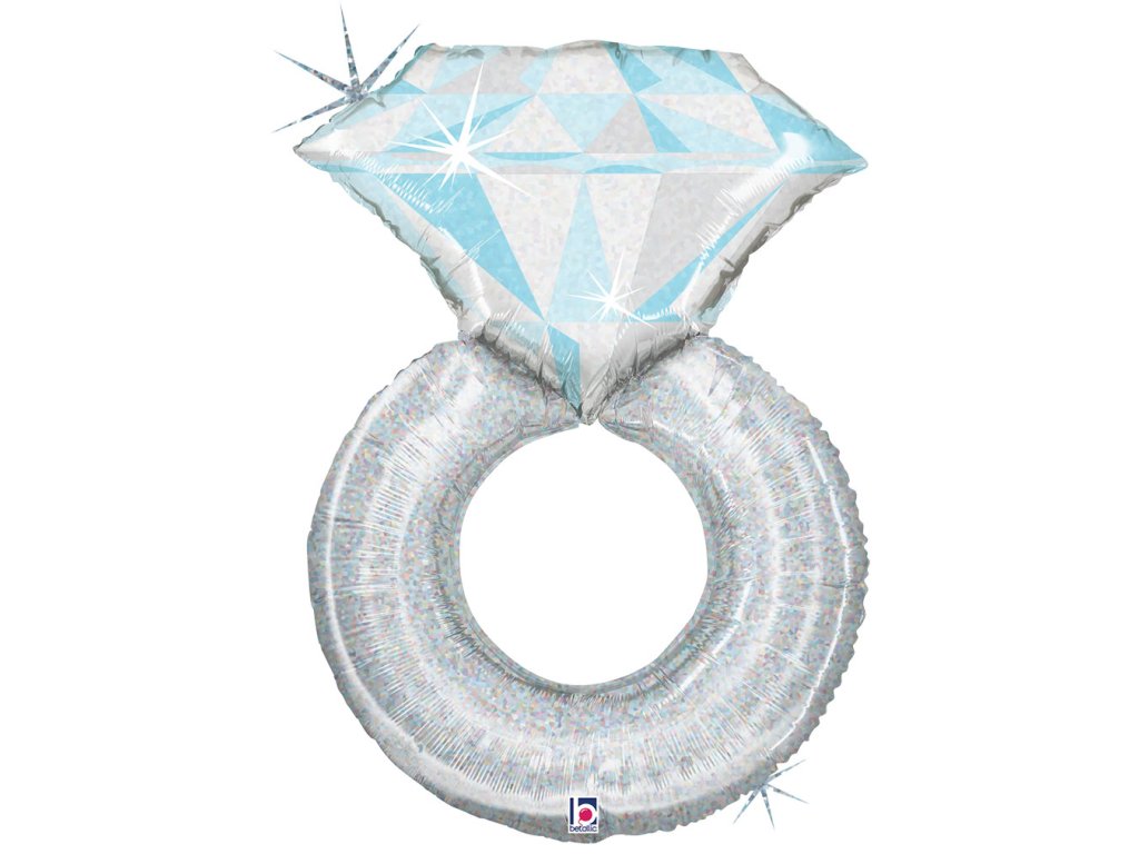 Fóliový balonek Prsten stříbrný holografický (duhově třpytivý efekt), velikost 54 x 79 cm.