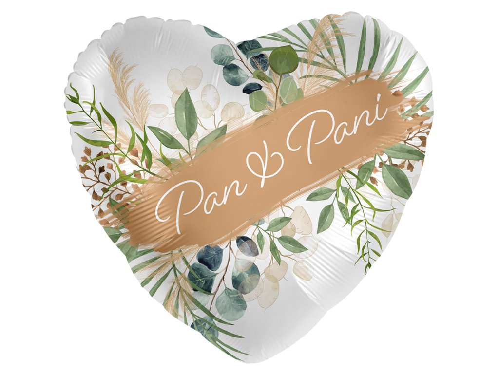 Fóliový balonek srdce bílé s přírodním potiskem a nápisem Pan & Paní, velikost 43 cm.
