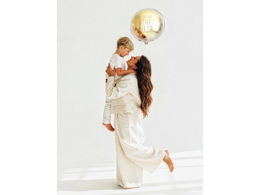 Fóliový balonek v béžové barvě se zlatým potiskem a nápisem YOU ARE THE BEST, velikost 45 cm.