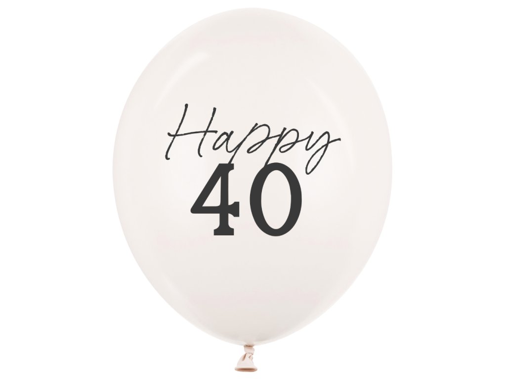Latexový balonek s číslem 40 pastelový krémově bílý (Off-white) s černým potiskem, velikost 30 cm.