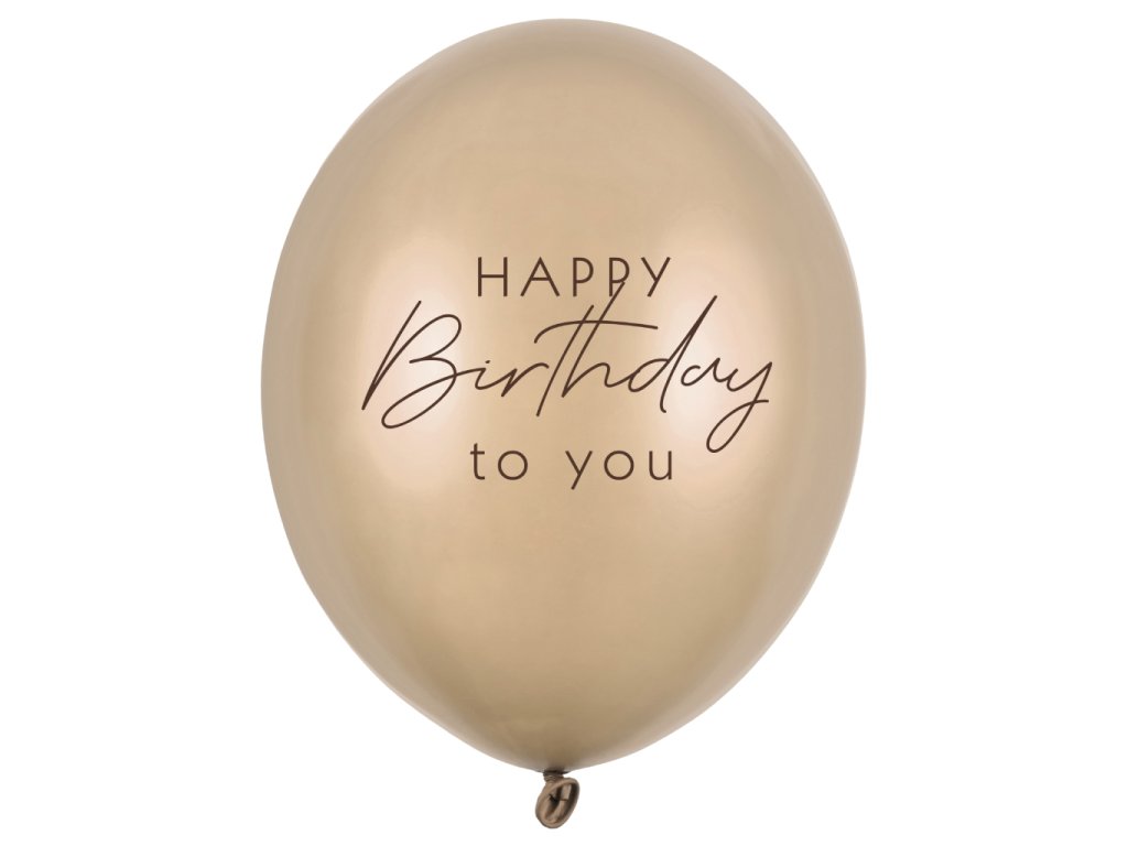 Latexový balonek Happy Birthday To You metalický matně zlatý (Cold Gold) s oboustranným potiskem, velikost 30 cm.