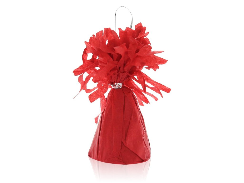 Balonkové těžítko papírové třásně červené, výška 14 cm, váha 145 g.