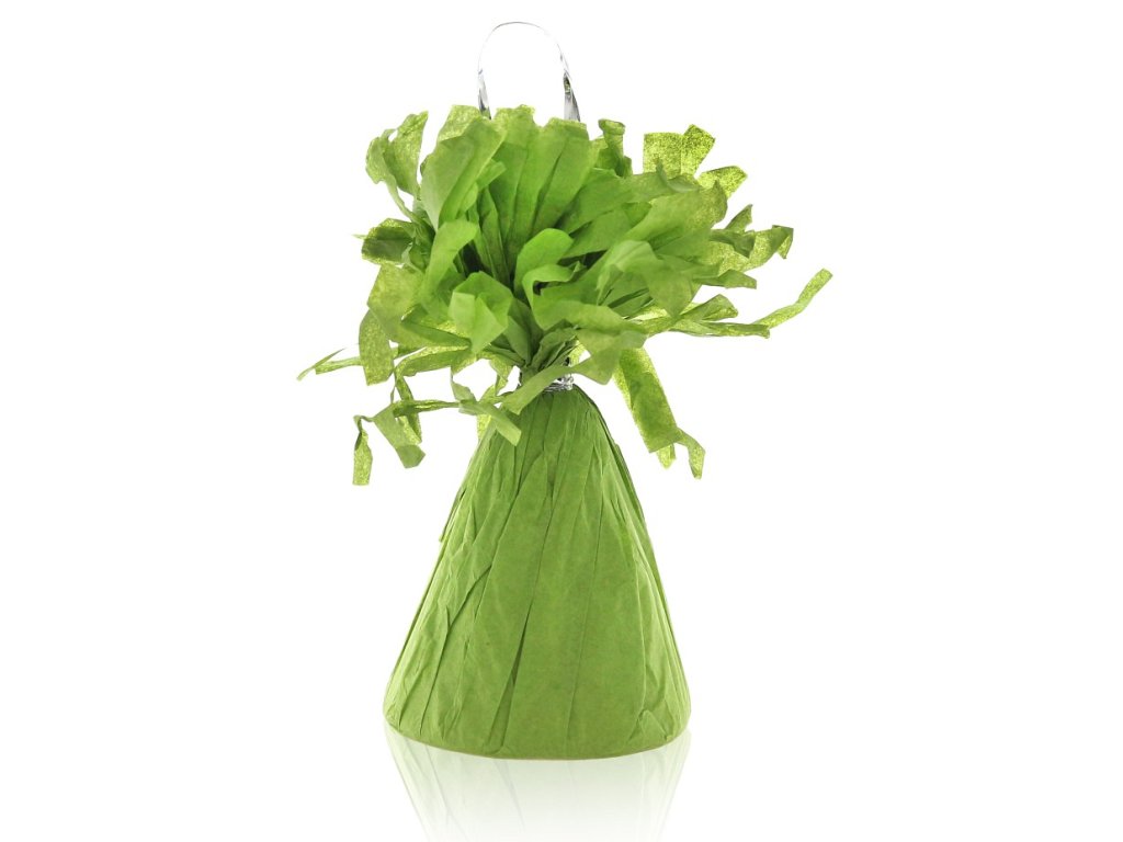 Balonkové těžítko papírové třásně olivově zelené, výška 14 cm, váha 145 g.