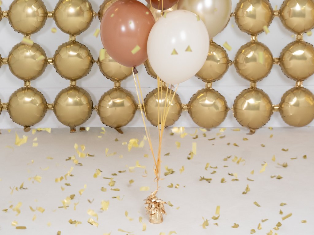 Balonkové těžítko fóliové třásně saténově zlaté, výška 7 cm, váha 130 g.