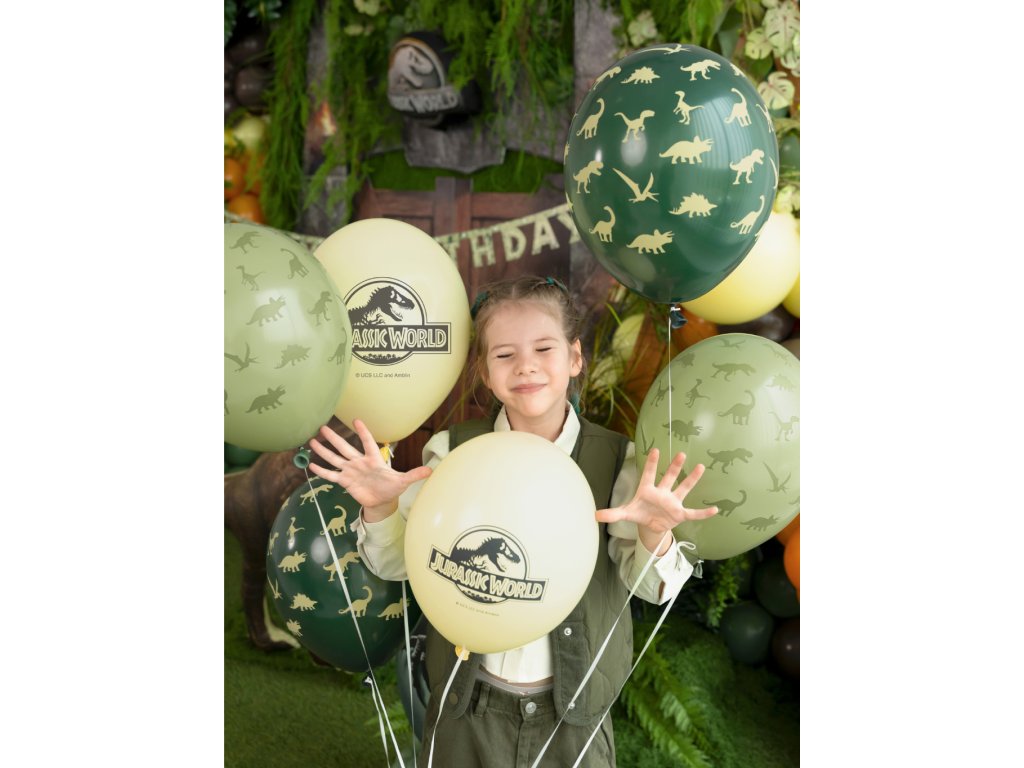 Vytvořte si doma opravdovou pravěkou džungli! Tato sada šesti kvalitních latexových balonků v přírodních odstínech tmavě zelené, olivové a bledě žluré barvy je nezbytným doplňkem pro každou dobrodružnou výpravu. Mix barev a vzorů zajistí, že vaše dekorace nebude působit nudně, ale naopak jako z divokého Jurského parku. V balení najdete balonky s ikonickým logem Jurassic World i kousky s detailním celoplošným potiskem siluet dinosaurů – od létajících Pteranodonů až po majestátní Brachiosaury a dravé T-Rexy.