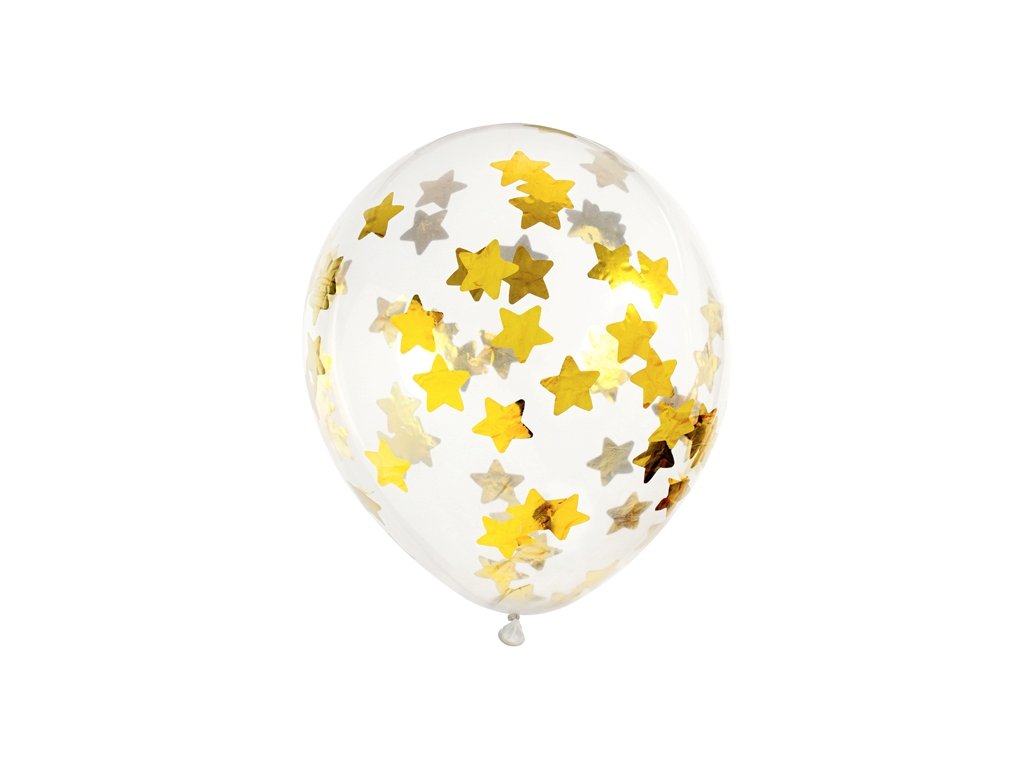 Set latexových průhledných balonků předplněných konfetami - fóliové zlaté hvězdy, velikost balonku 30 cm, v balení 6 ks.