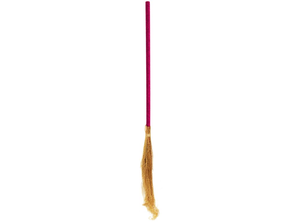 Čarodějnické koště v tmavě růžové barvě tvoří plastová rukojeť a roští, rozměr koštěte se pohybuje v rozmezí 80 - 90 cm.