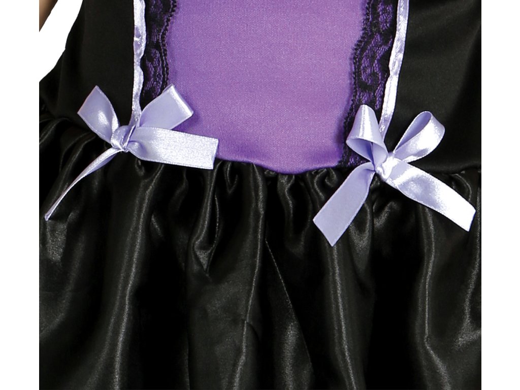Dětský kostým Čarodějnice v černé barvě s fialovými prvky, velikost 86-92 cm (18-24 měsíců). Balení obsahuje šaty a klobouk.