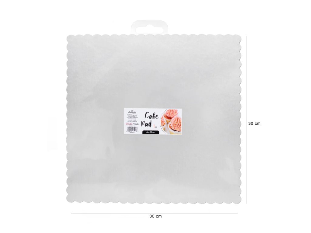 Podložka pod dort čtvercová stříbrná, velikost podložky 30 x 30 cm.