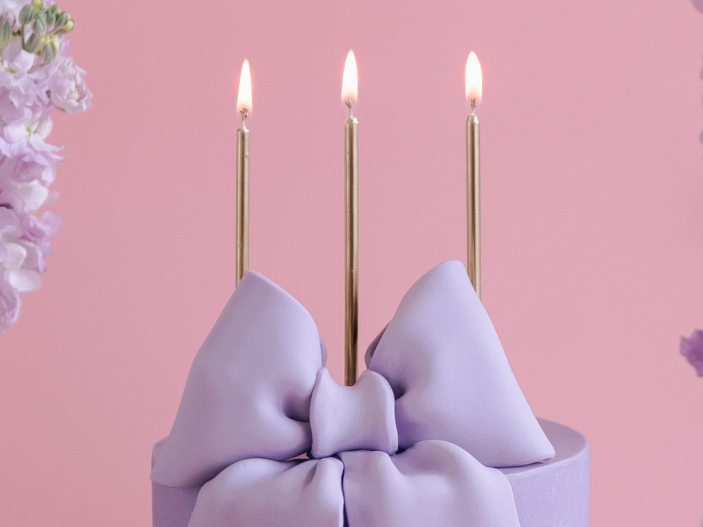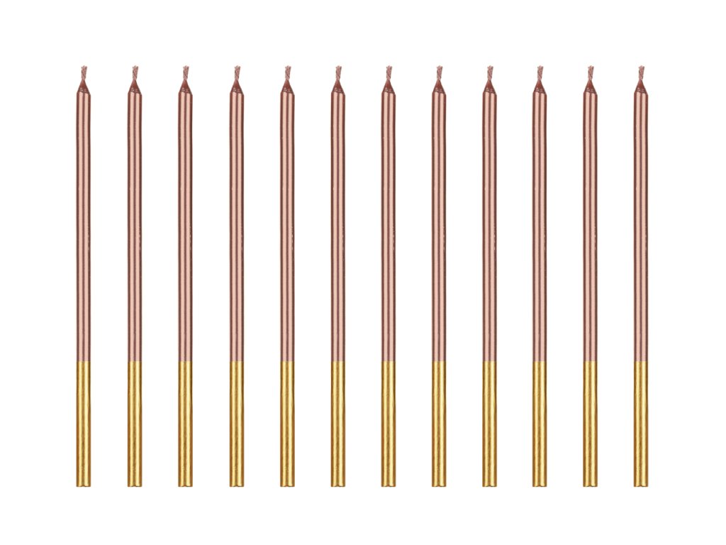 Dortové svíčky růžově zlaté dlouhé se zlatým koncem, 12 ks