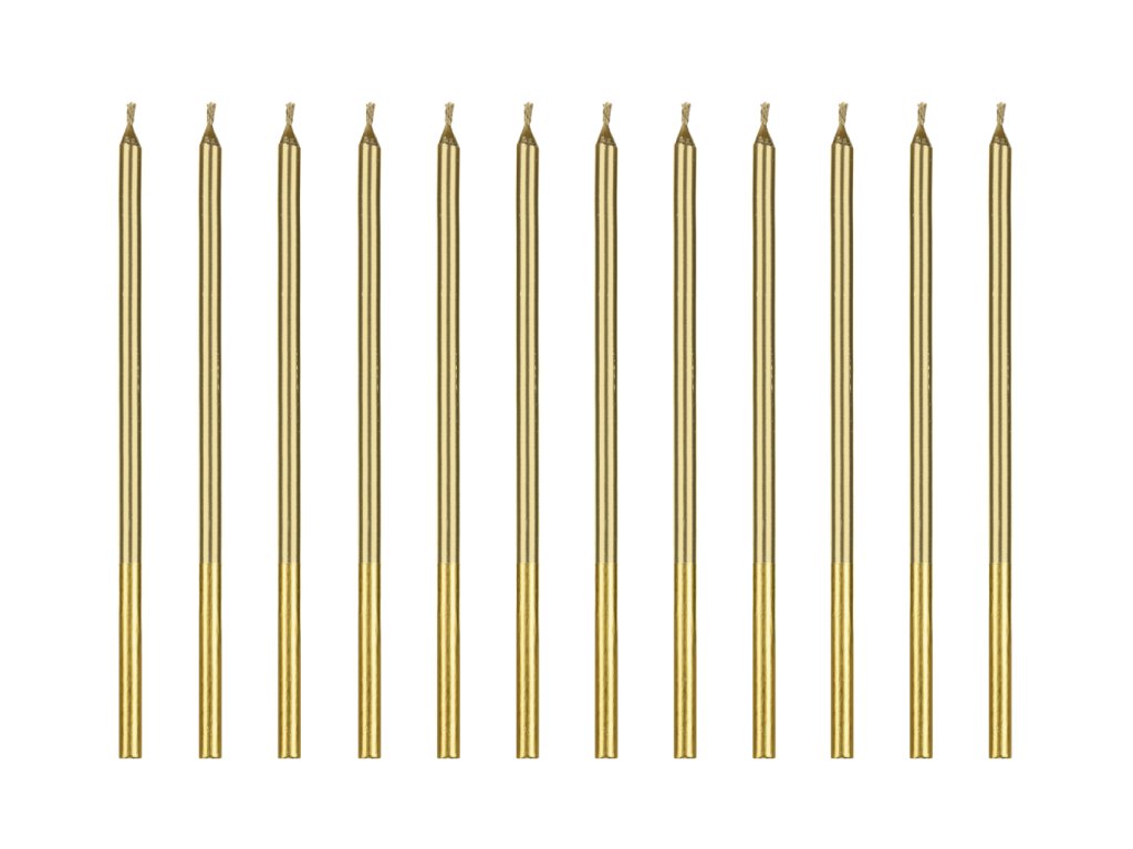 Dortové svíčky zlaté dlouhé se zlatým koncem, 12 ks