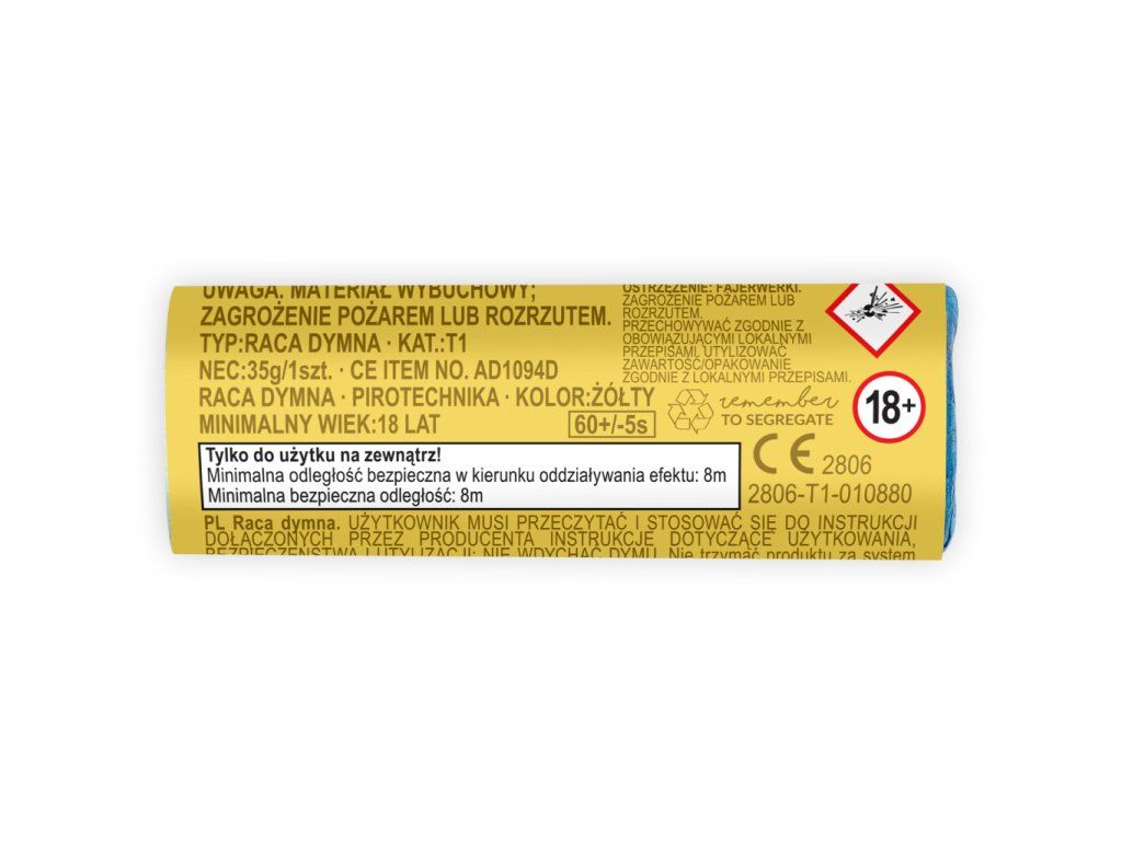 Dýmovnice se žlutým kouřovým efektem, délka 11,5 cm.