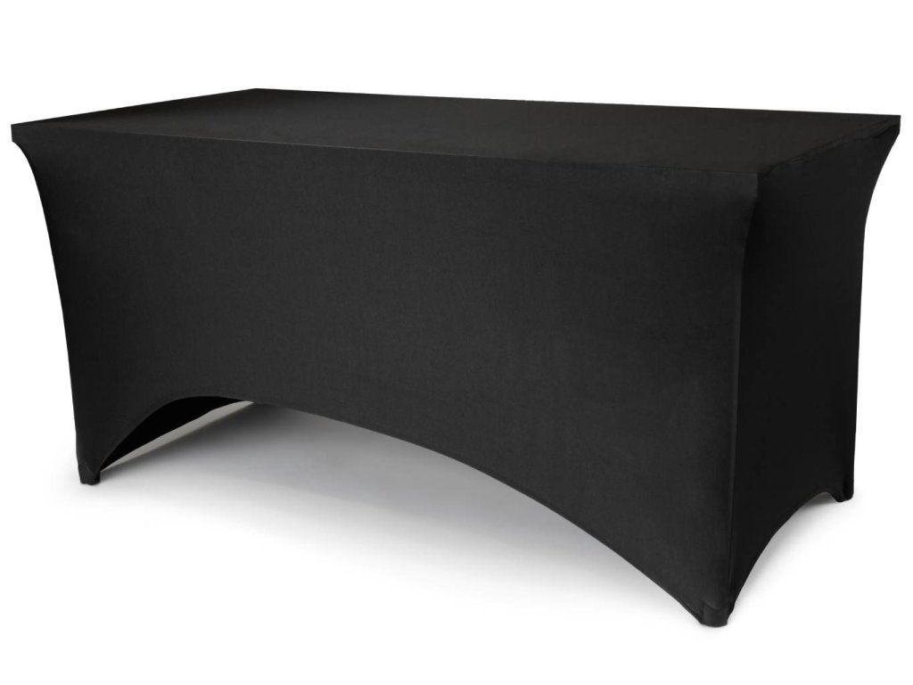 Elastický ubrus v černé barvě na obdélníkový banketový nebo rautový stůl, velikost 183 x 76 x 74 cm.