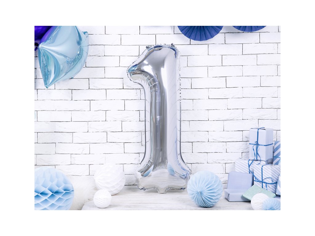 Fóliový balonek číslo 1 metalický stříbrný, velikost 86 cm.