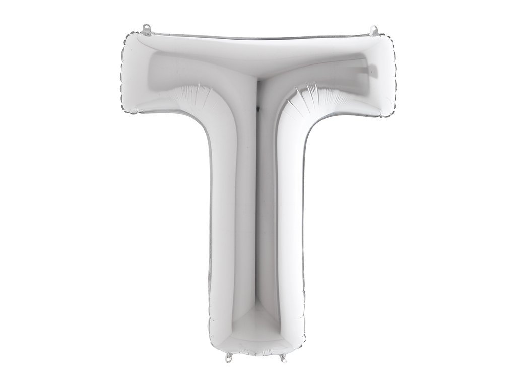 Fóliový balonek písmeno T stříbrný (Silver), velikost 102 cm.