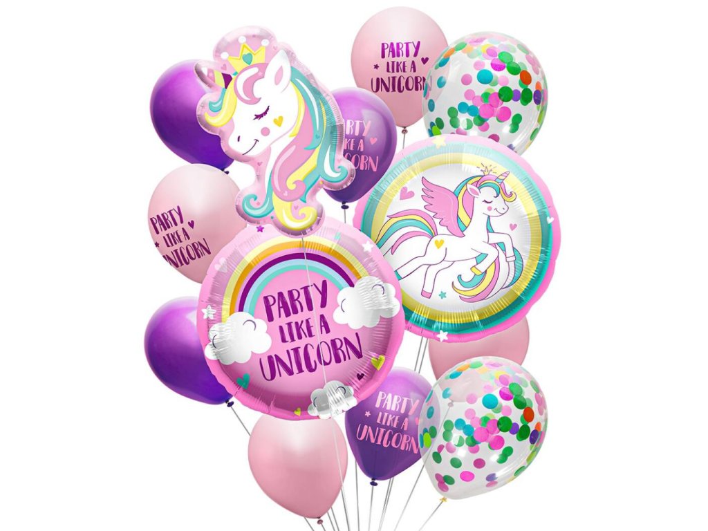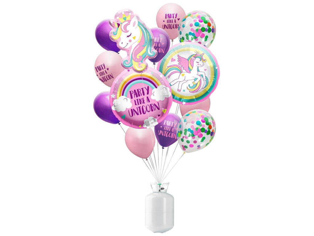 Unicorn set fóliových a latexových balonků s heliem 30 obsahuje: