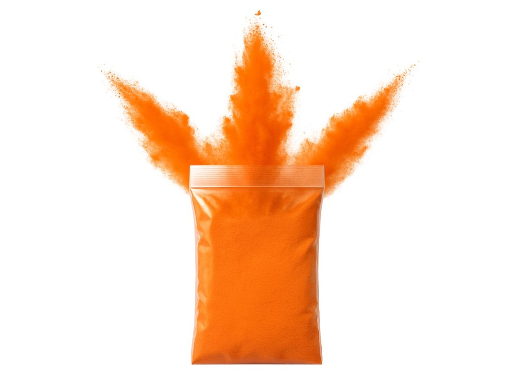 Holi powder prášková oranžová barva na bázi kukuřičného škrobu obsahuje potravinářská barviva, je netoxická a stíratelná z většiny tkanin, obsah 70 g. Není určen ke konzumaci.