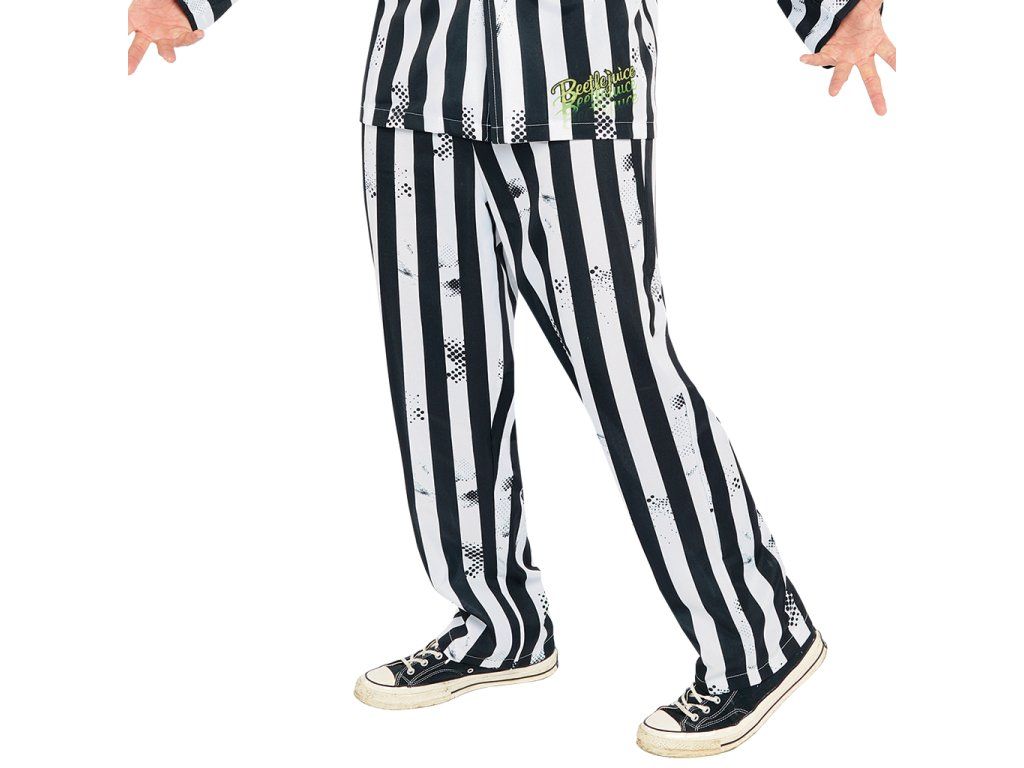Kostým sází na nezaměnitelný černobílý pruhovaný design, který okamžitě rozpozná každý fanoušek filmové klasiky. Výrazné svislé pruhy opticky prodlužují postavu a zaručují, že vás v davu nikdo nepřehlédne.
