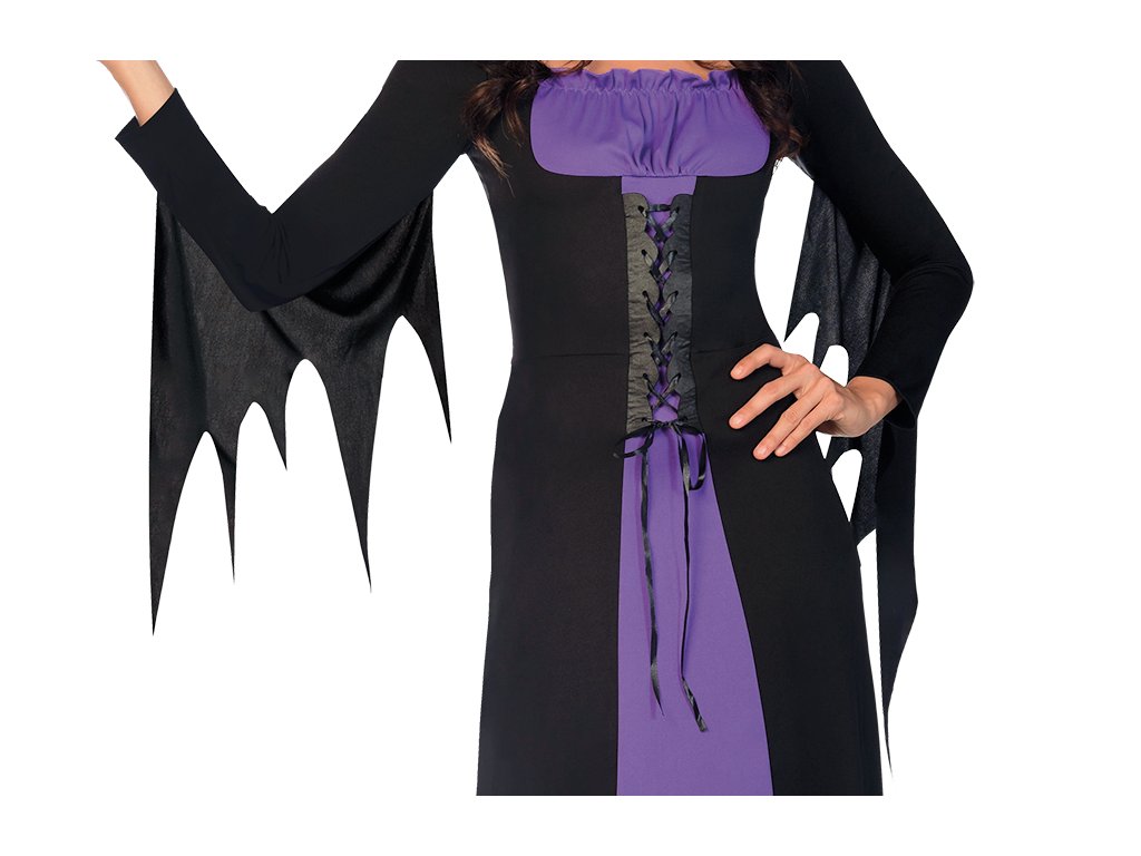 Hledáte-li originální převlek čarodějnice, který působí elegantním a propracovaným dojmem, je tento model od výrobce Amscan skvělou volbou. Kombinace černé a fialové barvy je nadčasová a v davu vás nikdo nepřehlédne.