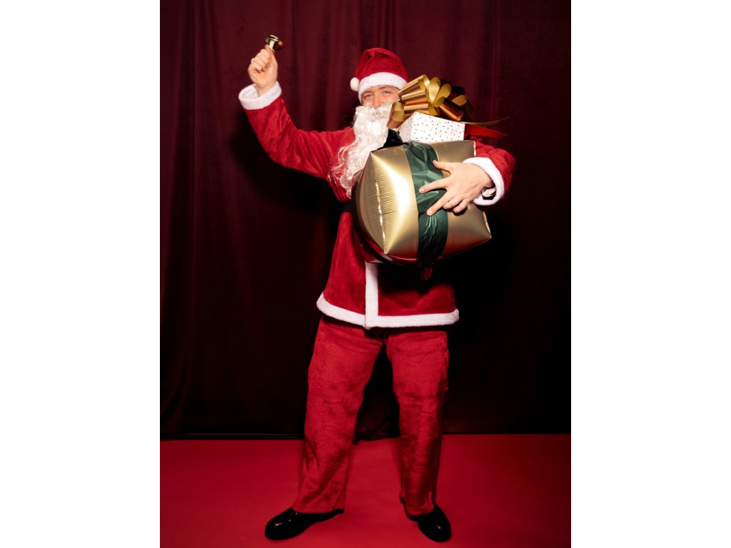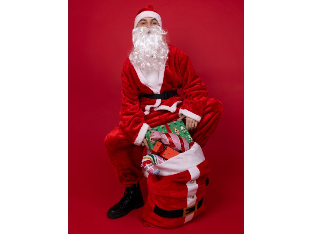 Pánský kostým Santa Claus Premium v červené a bílé barvě, velikost 170 - 190 cm. Balení obsahuje kabát, kalhoty, pásek, čepici a plnovous.