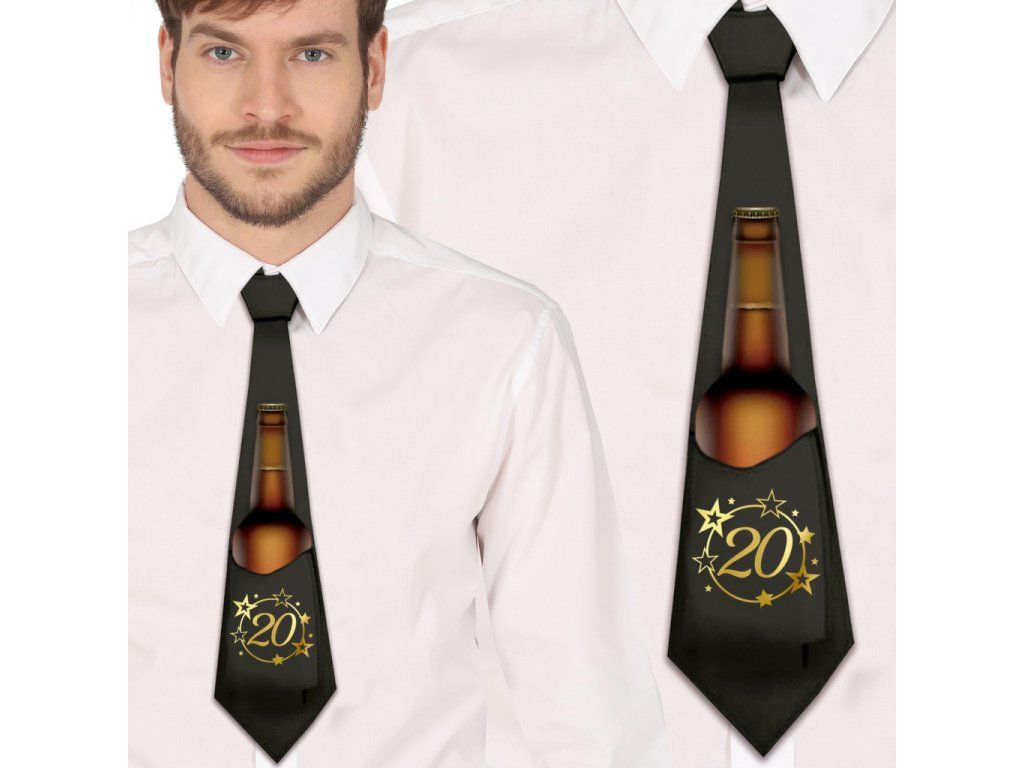 Dvacáté narozeniny jsou velkým milníkem, který si zaslouží oslavu ve velkém stylu a s volnýma rukama. Naše černá párty kravata s číslovkou "20" je stvořena pro každou pořádnou narozeninovou jízdu. Černý podklad dává vyniknout zlatým detailům a hvězdnému prachu, ale to hlavní se skrývá vespod – integrovaná kapsa, která bezpečně pojme vaši oblíbenou plechovku nebo lahev.