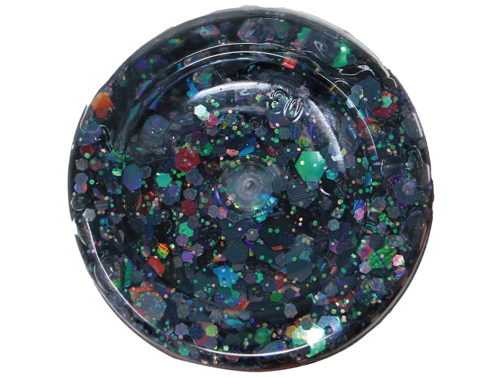 Karnevalový make-up gel s černými třpytkami na obličej, balení obsahuje 20 g.
