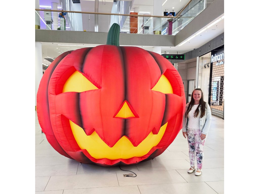 Halloweenská dekorace obří nafukovací Dýně, výška 3 m. Tato nafukovací atrakce vám pomůže dokreslit atmosféru temnoty a tajemna při oslavě svátku Halloween či jiné strašidelné slavnosti.