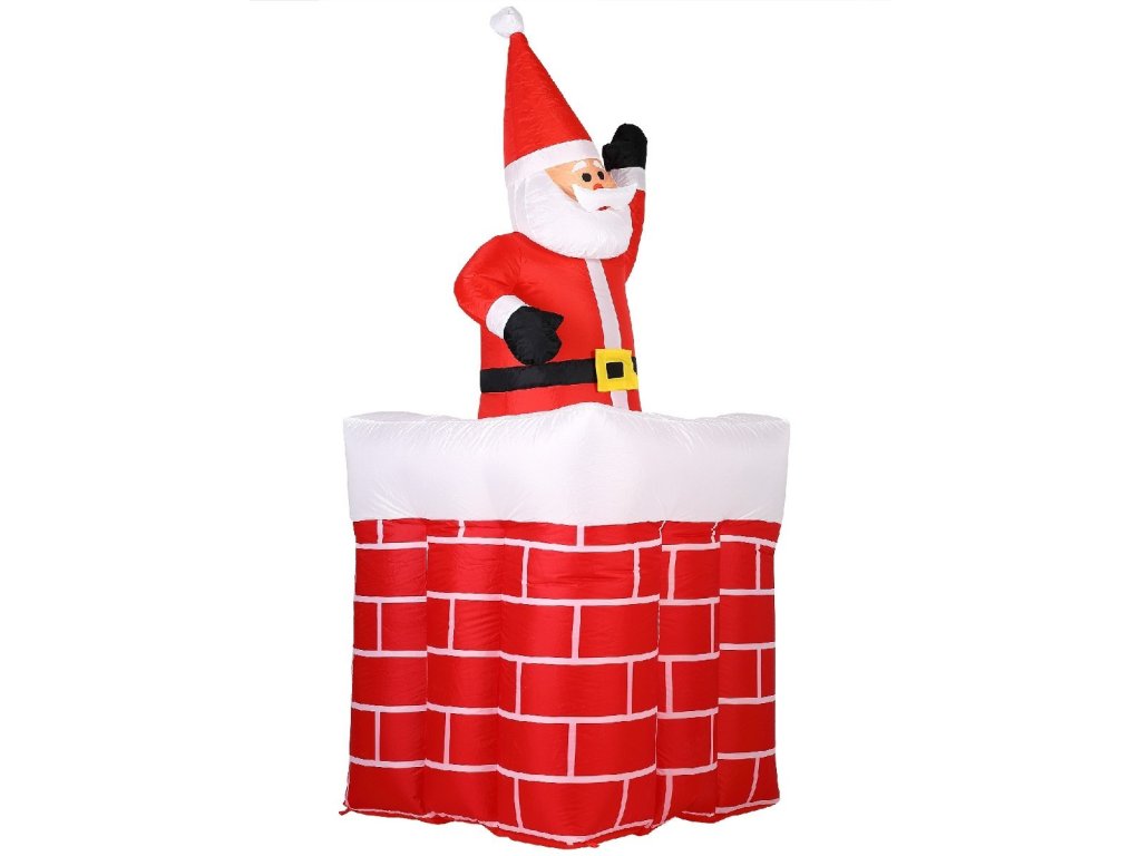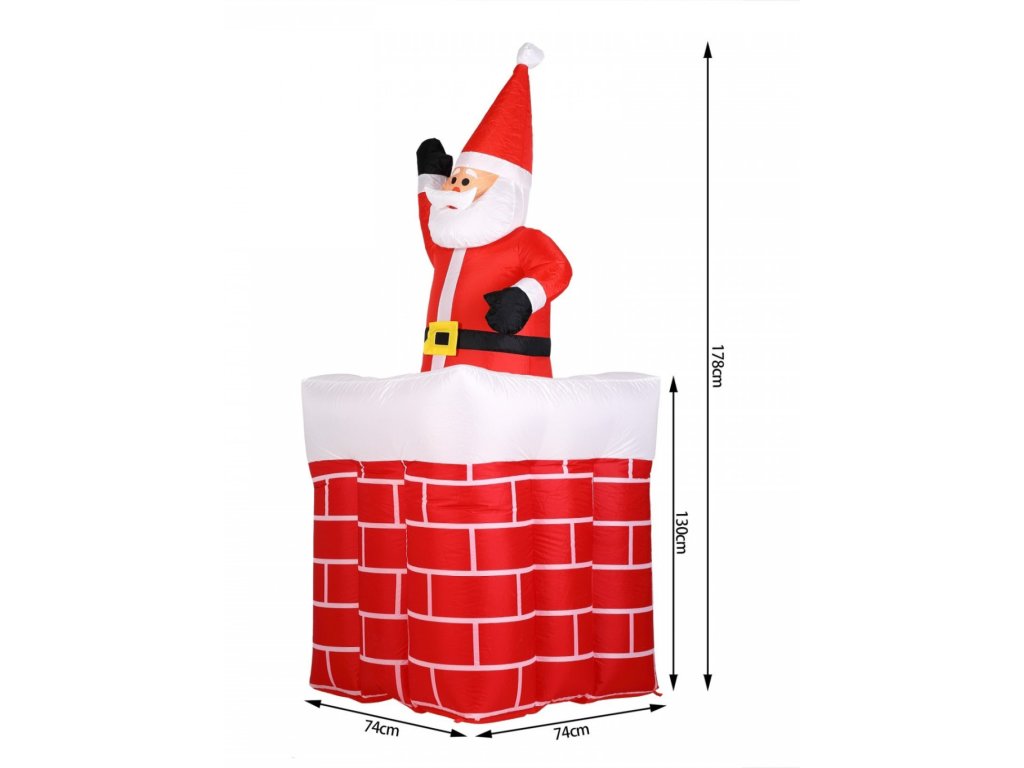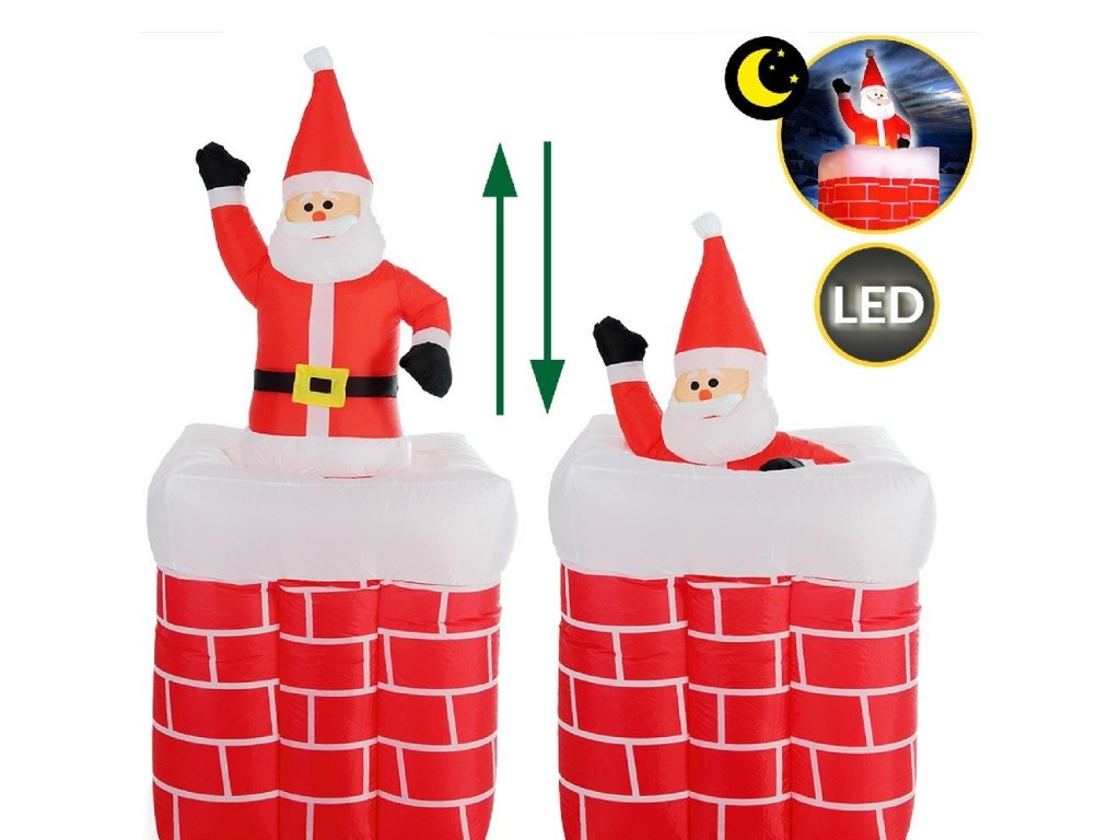 Vánoční dekorace SVÍTÍCÍ nafukovací komín se Santou, který se pohybuje nahoru a dolů, jakoby lezl z komína a do komína, výška 178 cm. Vhodné pro vnitřní i venkovní použití. Tato nafukovací atrakce vám pomůže navodit vánoční atmosféru plnou dobré nálady a sváteční pohody.