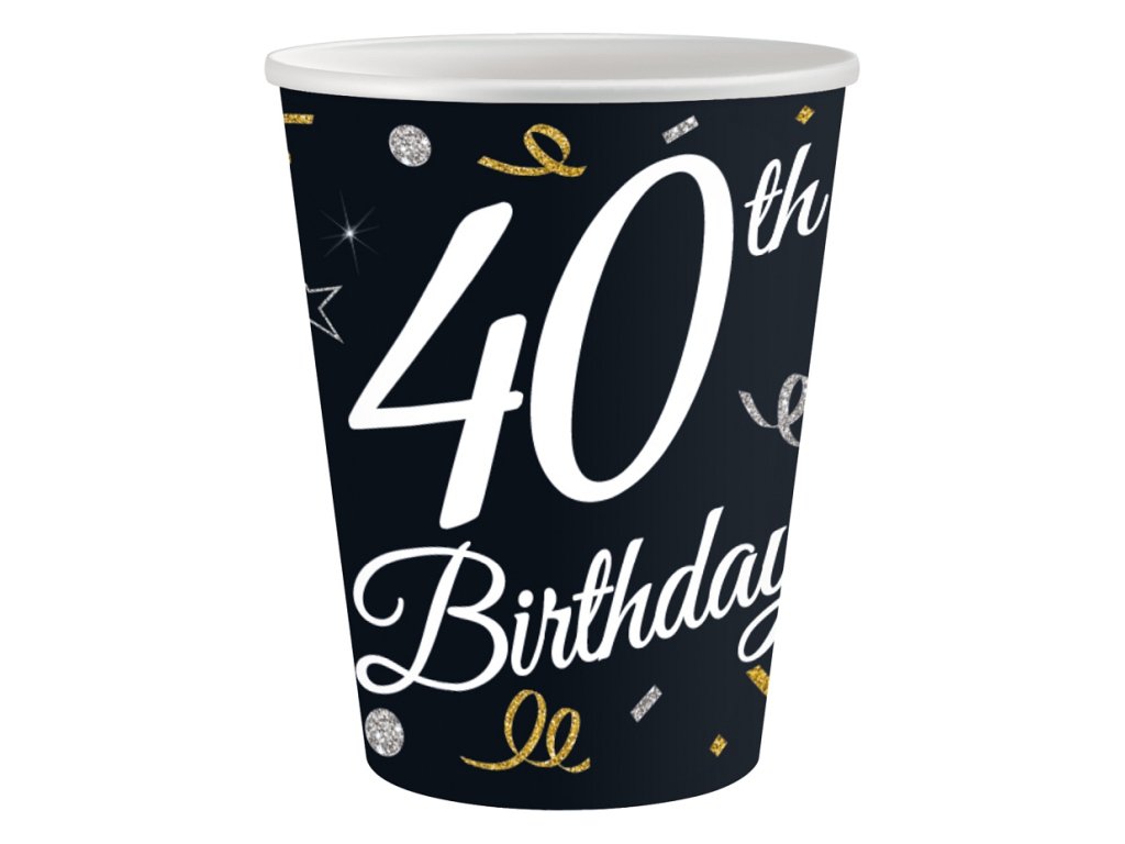 Papírové kelímky černo-zlaté s číslem 40 z kolekce Beauty&Charm, objem 250 ml, v balení 6 ks.