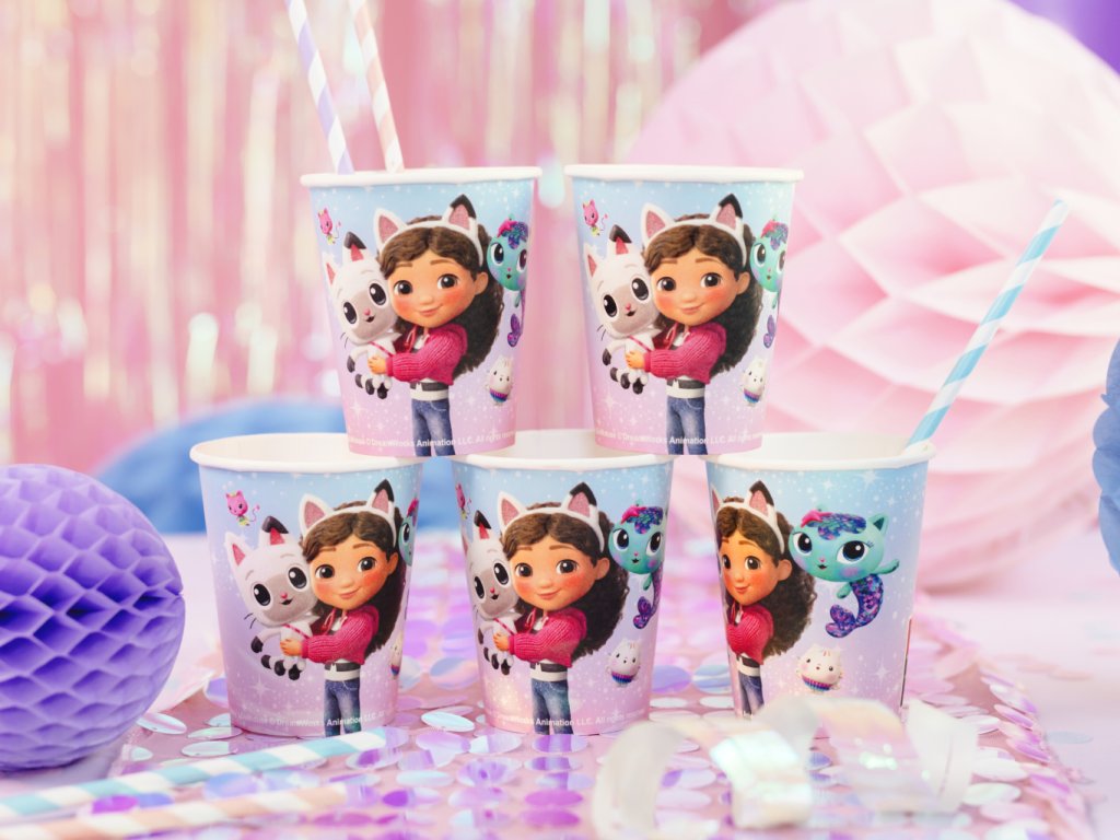 Papírové kelímky s motivem Gábinin kouzelný domek (Gabby's Dollhouse), objem 250 ml, v balení 6 ks.