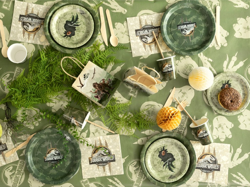 Chystáte oslavu, na které ožijí pravěcí obři? Naše kolekce Jurský svět promění každou dětskou párty v dechberoucí expedici plnou dobrodružství a prehistorických objevů! Vytvořte si svůj vlastní dinosauří park přímo u vás doma. Tematická sada doplňků v přírodních barvách džungle s ikonickým logem T-Rexe zaručí, že vaše oslava bude mít atmosféru, o které se bude mluvit ještě dlouho po „vyhynutí“ posledního kousku dortu. Vše je vyladěno do posledního detailu pro maximální vizuální zážitek z nespoutané divočiny.