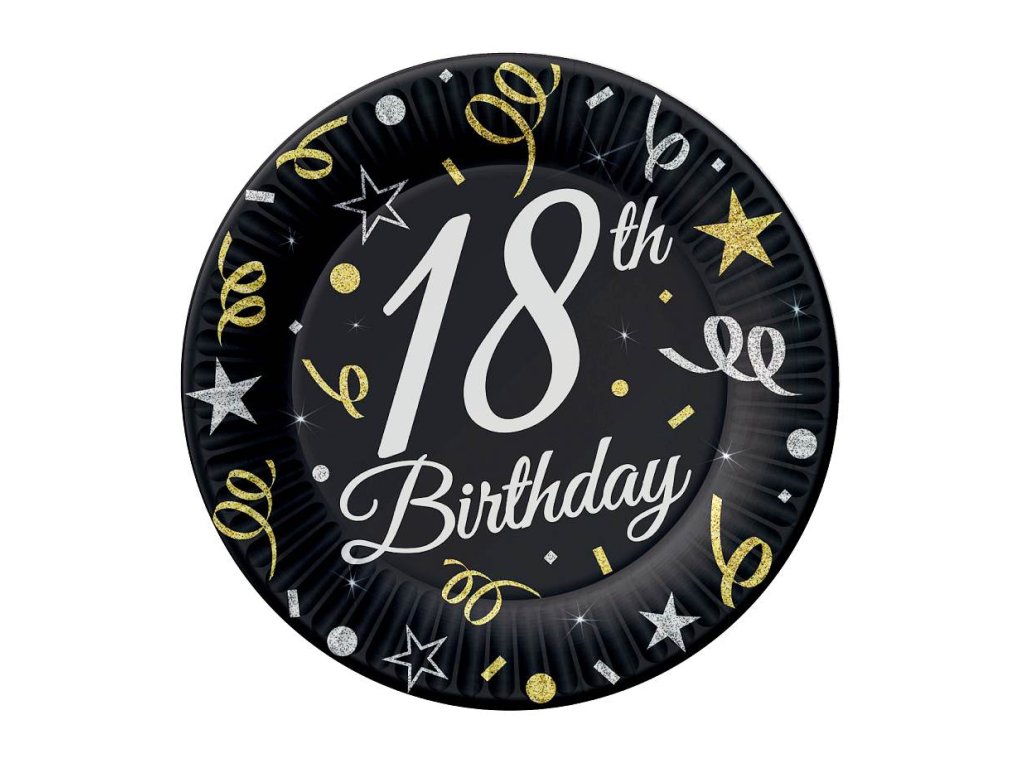 Papírové talířky černo-zlaté s číslem 18 z kolekce Beauty&Charm, velikost 18 cm, v balení 6 ks.