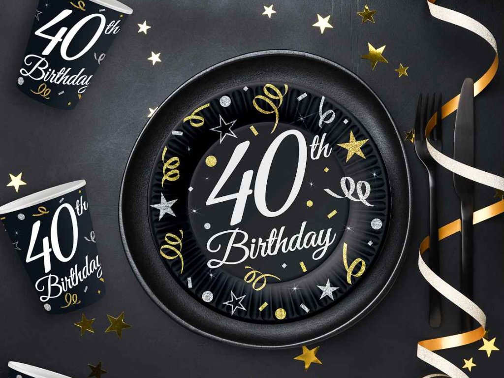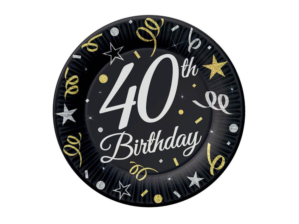 Papírové talířky černo-zlaté s číslem 40 z kolekce Beauty&Charm, velikost 18 cm, v balení 6 ks.