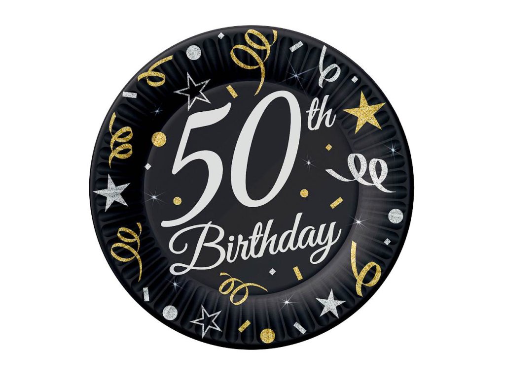 Papírové talířky černo-zlaté s číslem 50 z kolekce Beauty&Charm, velikost 18 cm, v balení 6 ks.