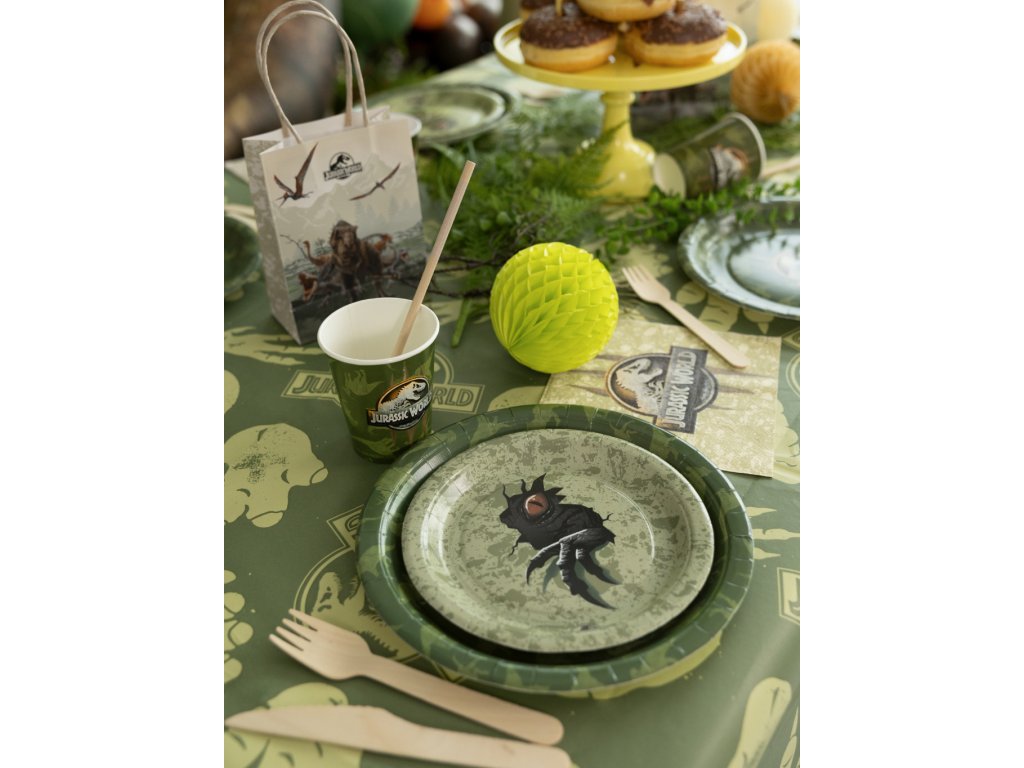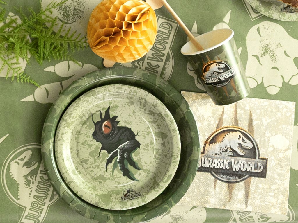 Chystáte oslavu, na které ožijí pravěcí obři? Naše kolekce Jurský svět promění každou dětskou párty v dechberoucí expedici plnou dobrodružství a prehistorických objevů! Vytvořte si svůj vlastní dinosauří park přímo u vás doma. Tematická sada doplňků v přírodních barvách džungle s ikonickým logem T-Rexe zaručí, že vaše oslava bude mít atmosféru, o které se bude mluvit ještě dlouho po „vyhynutí“ posledního kousku dortu. Vše je vyladěno do posledního detailu pro maximální vizuální zážitek z nespoutané divočiny.
