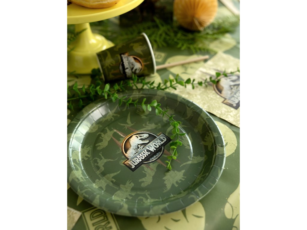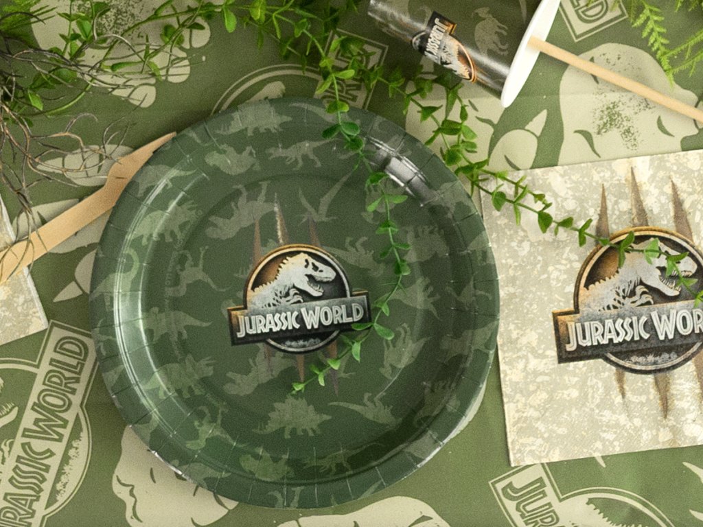 Chystáte oslavu, na které ožijí pravěcí obři? Naše kolekce Jurský svět promění každou dětskou párty v dechberoucí expedici plnou dobrodružství a prehistorických objevů! Vytvořte si svůj vlastní dinosauří park přímo u vás doma. Tematická sada doplňků v přírodních barvách džungle s ikonickým logem T-Rexe zaručí, že vaše oslava bude mít atmosféru, o které se bude mluvit ještě dlouho po „vyhynutí“ posledního kousku dortu. Vše je vyladěno do posledního detailu pro maximální vizuální zážitek z nespoutané divočiny.