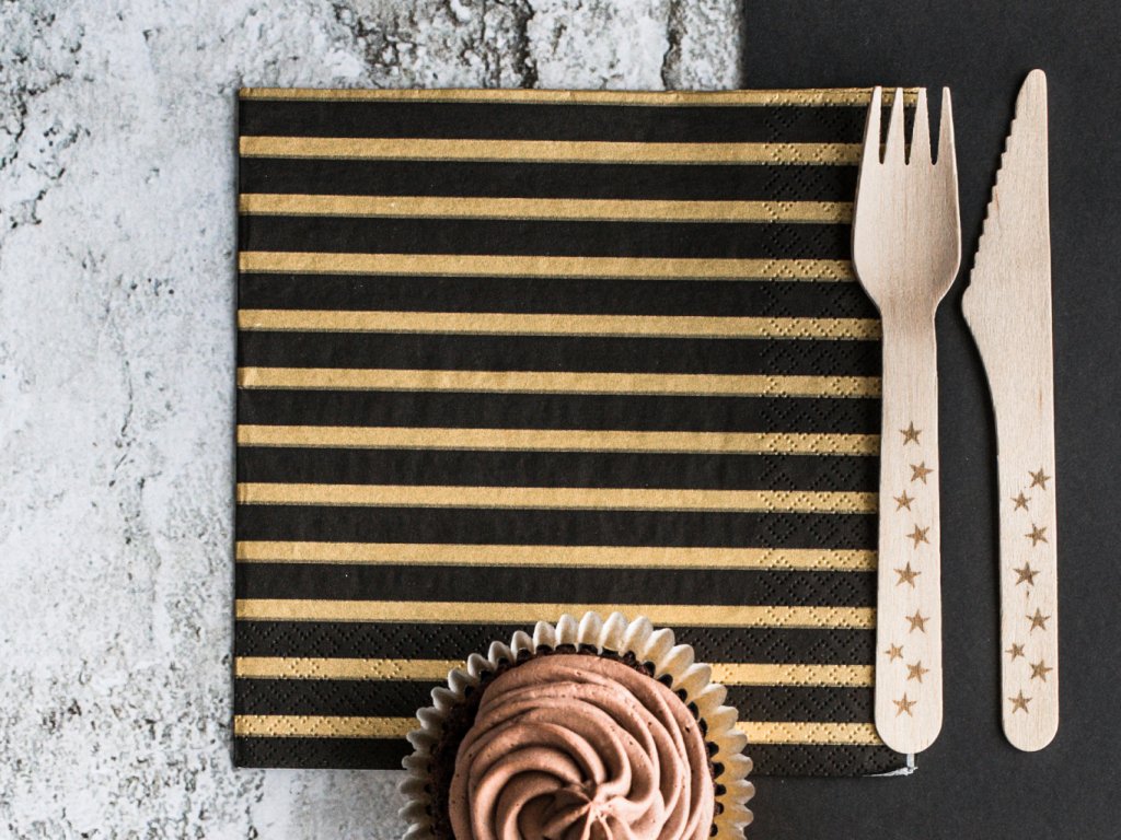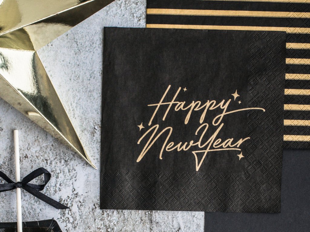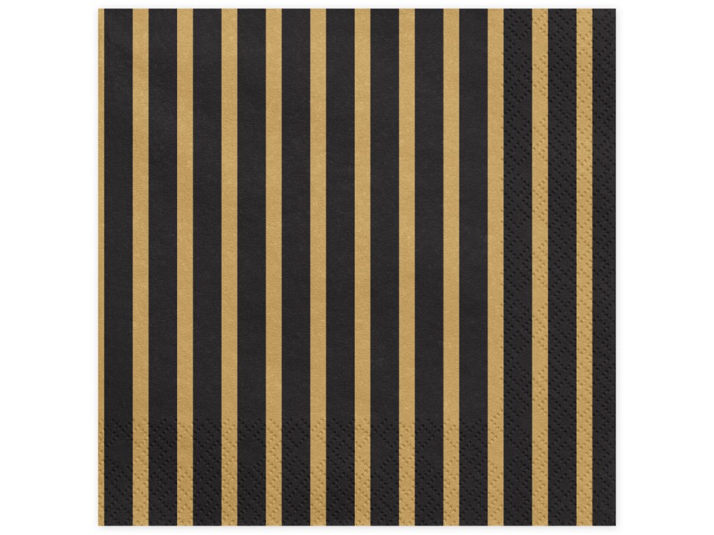 Papírové ubrousky černé se zlatými proužky 33 x 33 cm, 20 ks