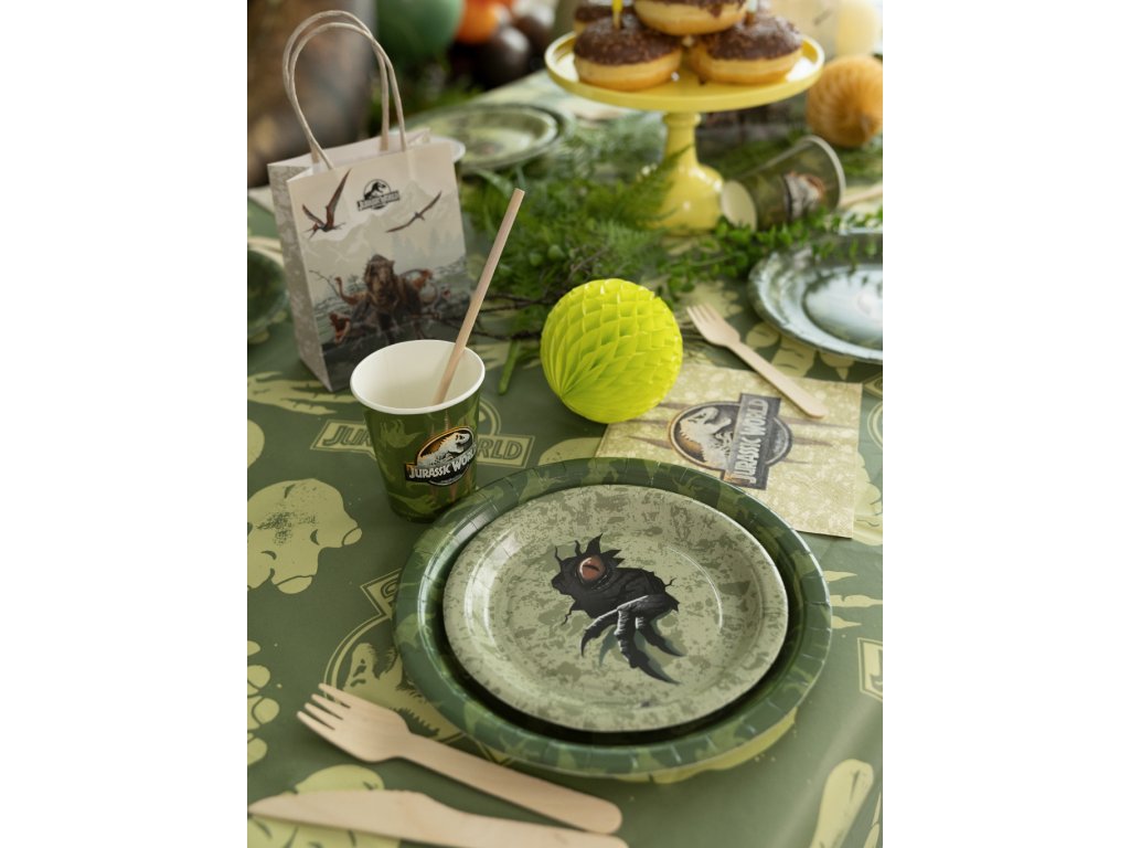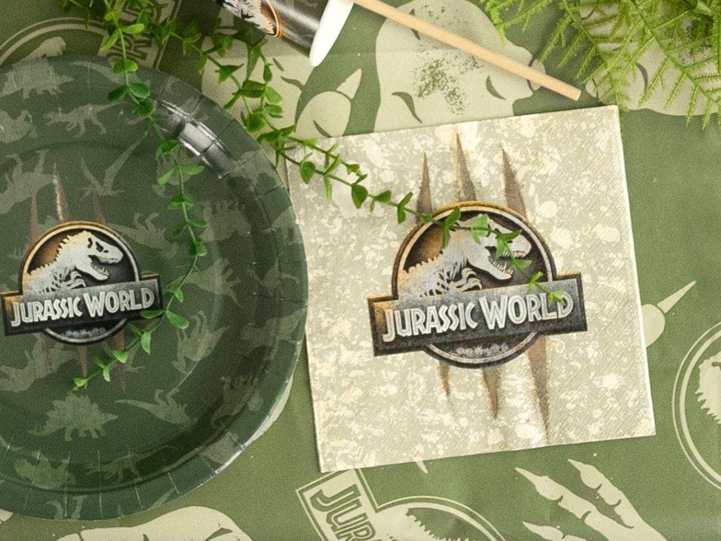Chystáte oslavu, na které ožijí pravěcí obři? Naše kolekce Jurský svět promění každou dětskou párty v dechberoucí expedici plnou dobrodružství a prehistorických objevů! Vytvořte si svůj vlastní dinosauří park přímo u vás doma. Tematická sada doplňků v přírodních barvách džungle s ikonickým logem T-Rexe zaručí, že vaše oslava bude mít atmosféru, o které se bude mluvit ještě dlouho po „vyhynutí“ posledního kousku dortu. Vše je vyladěno do posledního detailu pro maximální vizuální zážitek z nespoutané divočiny.