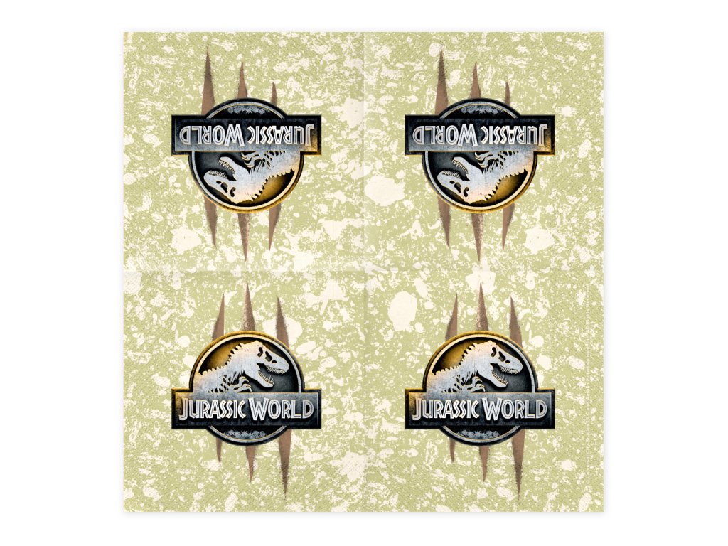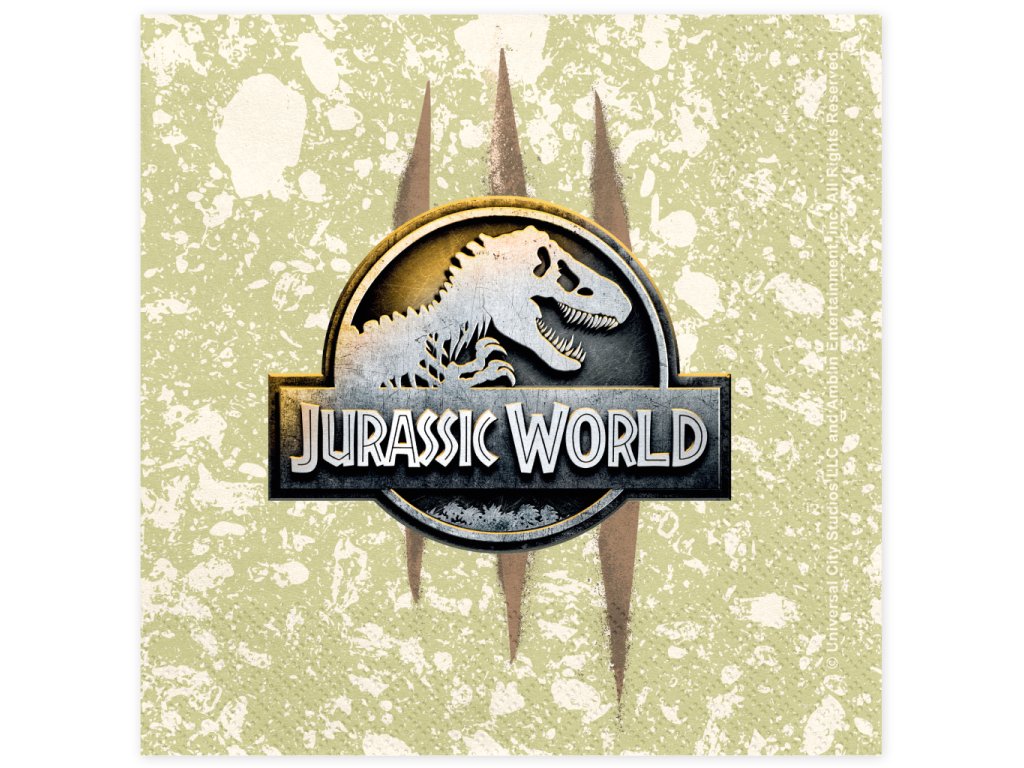 Doplňte svou narozeninovou tabuli o prvek, ze kterého mrazí! Tyto dvouvrstvé papírové ubrousky s oficiálním logem Jurského světa jsou ideálním doplňkem pro každého malého paleontologa. Na jemném krémovém pozadí s texturou starého kamene vyniká stříbrné logo s T-Rexem, kterému dominují tři hluboké stopy po drápech dravého predátora.