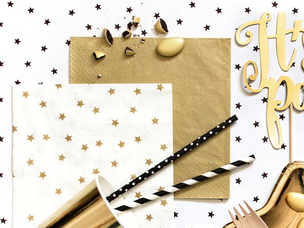 Papírové ubrousky v metalické zlaté barvě, velikost 33 x 33 cm, v balení 20 ks.
