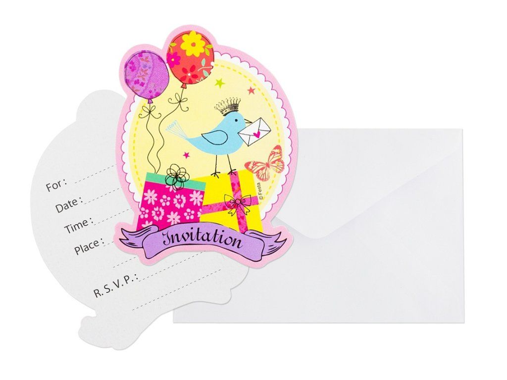 Narozeninové pozvánky Sweet moments (sladké momenty) s předepsanými řádky For (pro), Date (datum), Time (čas), Place (místo), R.S.V.P. (kontakt, kam potvrdit účast) včetně bílých obálek, velikost 14,5 cm x 10 cm, v balení 6 ks.